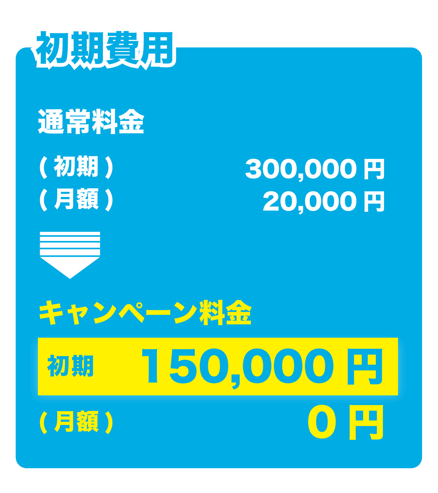キャンペーンをご利用の方は弊社の事例店舗という形で掲載させていただく場合がございます。